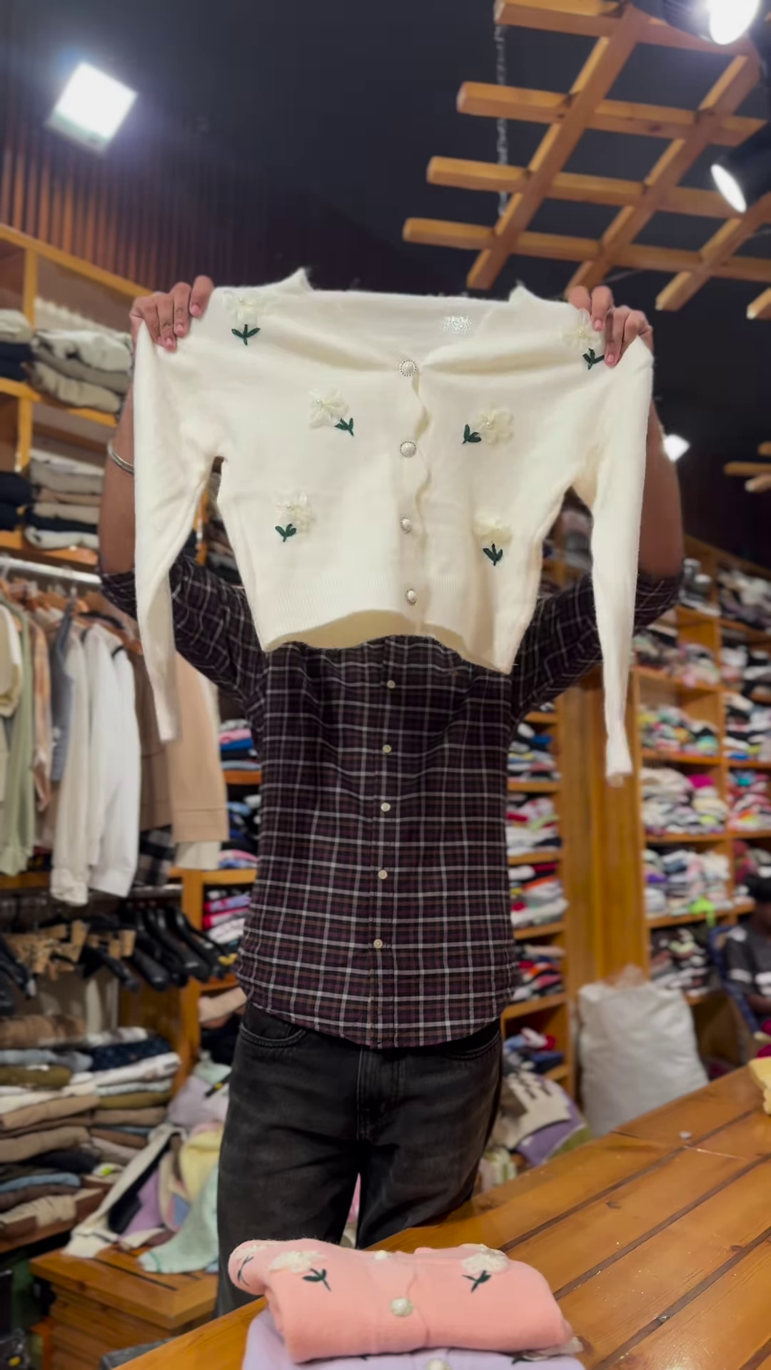 - 🧥 Style: Embroidered cardigans with pearl-style buttons and pastel charm
