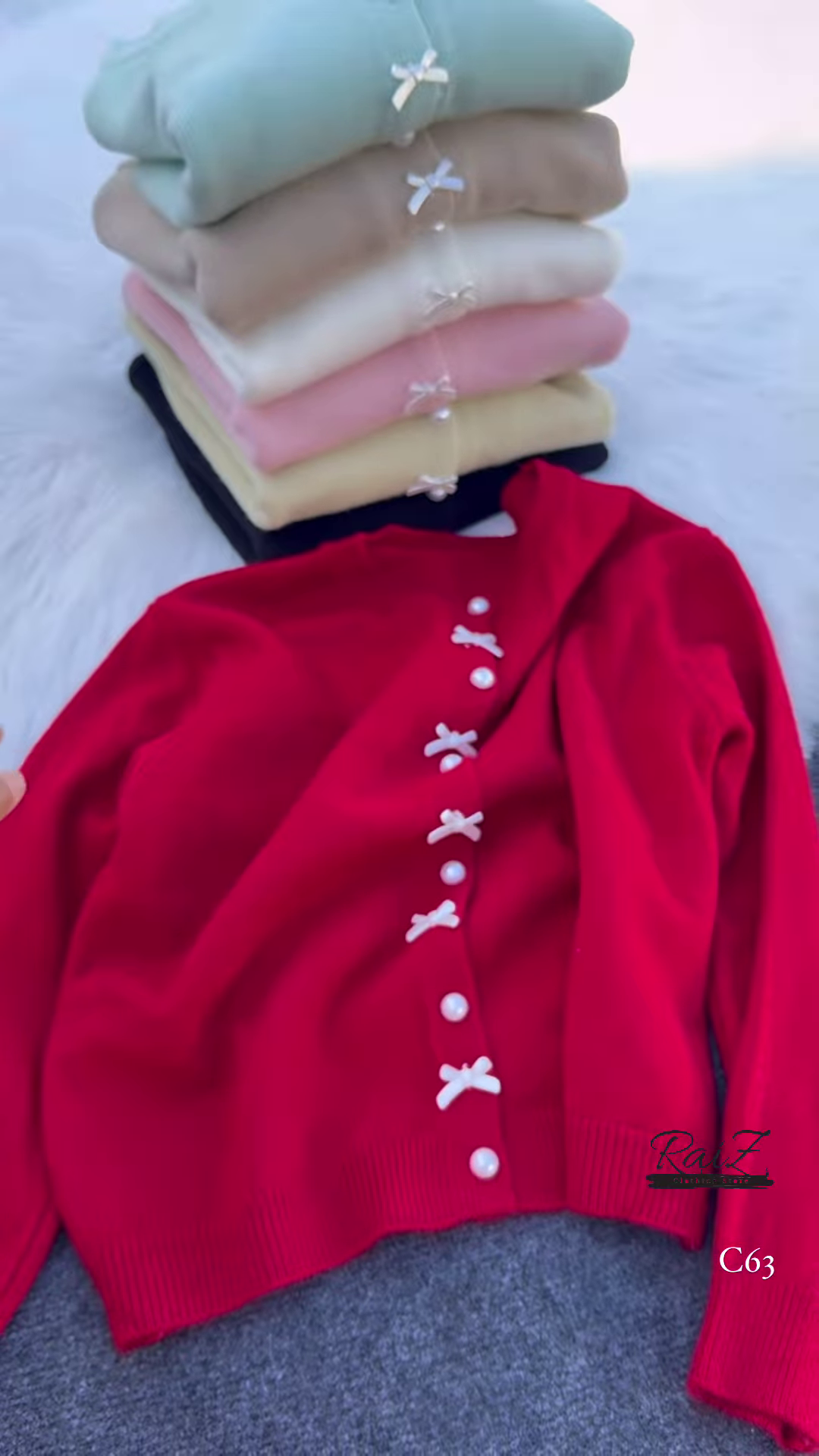 Add a touch of romance to your everyday wardrobe with this Pearl Bow Cardigan. Crafted in a soft, skin-friendly knit, it blends cozy comfort with delicate detailsβthink glossy pearl buttons and mini satin-look bow accents along the placket. The clean crew neckline, fine rib trims, and smooth finish create a polished silhouette you can wear to work, brunch, dates, or festive get-togethers. Itβs the perfect layer to elevate basics and bring a graceful, feminine energy to any outfit.